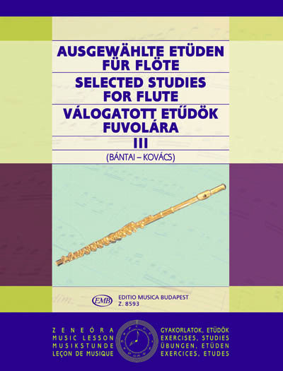 The three volumes contain 176 studies by 25 composers. The selection was made according to technical usefulness and musical value. The studies follow in order of the grade of difficulty and are grouped around certain problems. All three volumes can be applied as supplementary material to any flute tutor. Their use should be determined by the progress of the student and not by the class he attends. We recommend the first volume (Z. 8591) for beginners, the second (Z. 8592) one for advanced students on the lower level, the third (Z. 8593) for intermediate students.