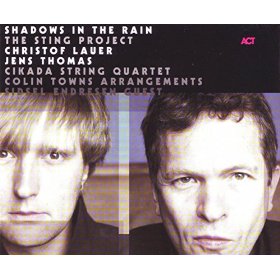 Christof Lauer’s and Jens Thomas’s friendship would be sealed with a project that, like the Thomas production of themes from Ennio Morricone, would be structured with chamber-music-like finesse, and would be without bass or drums. It would also be an hommage to another musician: Sting. The "good guy" among the Superstars, whose group, Police, had so impressed Jens Thomas before he had had much to do with jazz, now gets back (in the sense that jazz musicians are playing his themes) some of what he gave to the music in the late 1980’s. It was in that period that he opened up his group The Blue Turtles to the prominent American jazz musicians Branford Marsalis, Kenny Kirkland, and Omar Hakim. That Police guitarist Andy Summers completely left rock to pursue jazz is further evidence of the mysterious compatibility of Sting’s musical sphere with jazz. With elegant precision, Lauer and Thomas transport the themes from Sting into a space of free fantasy, preserving the basic atmospheric feeling of the often melancholy, often brilliantly raging originals. But their idea was to use the material for endless transformations, interpretations, and interaction that ranges from the lyrical to the turbulent. New harmonic interpretations and a grandiose kaleidoscope of colors are brought into play so that the sonorities of Lauer’s tenor and soprano saxophones sound pale and otherworldly, and the high tones are given a surrealistic brilliance. So it is with the soprano saxophone part from the title piece "Shadows In The Rain", on through to the cryptic, fanciful, ghostly voice of Sidsel Endresen.